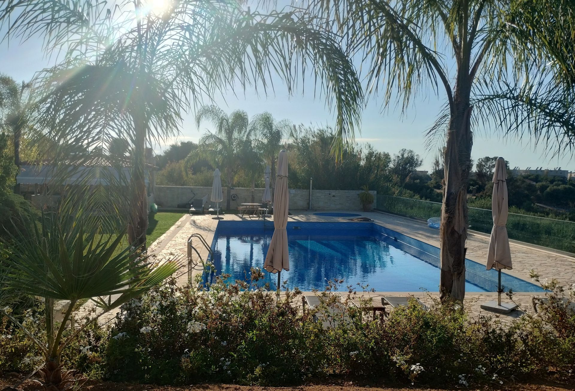 Auf der Anlage befindet sich ebenfalls ein großer Swimmingpool (15 m x 8 m) mit Liegestühlen und Sonnenschirmen. Die Poolbar am Swimminpool dient dem ungezwungenen Zusammensein der Urlauber.